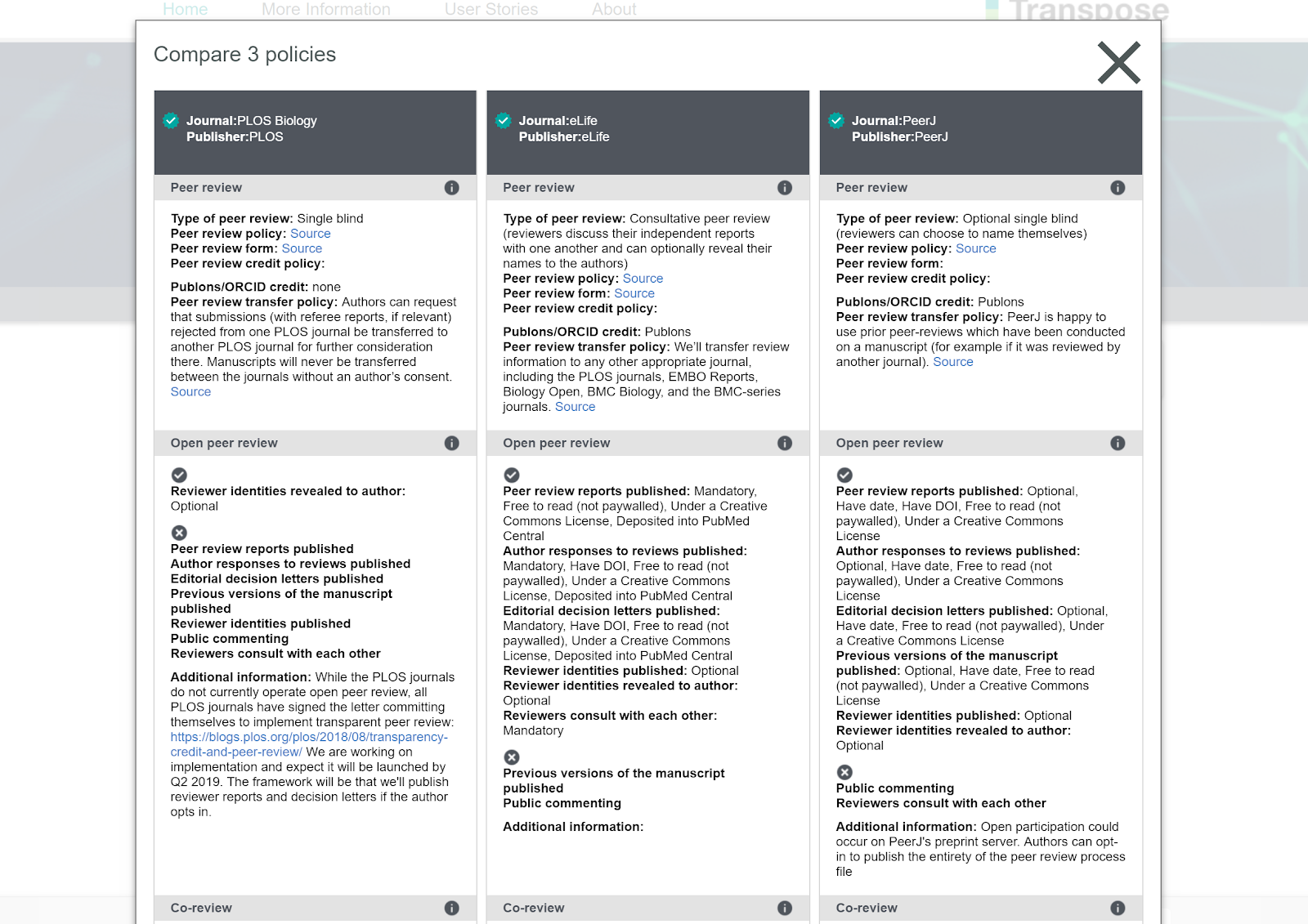 Today, we’re excited to announce the launch of Transpose (@TransposeSCI), a database of journal peer review, co-reviewing, and preprint policies relating to media coverage, licensing, versions, and citation.
