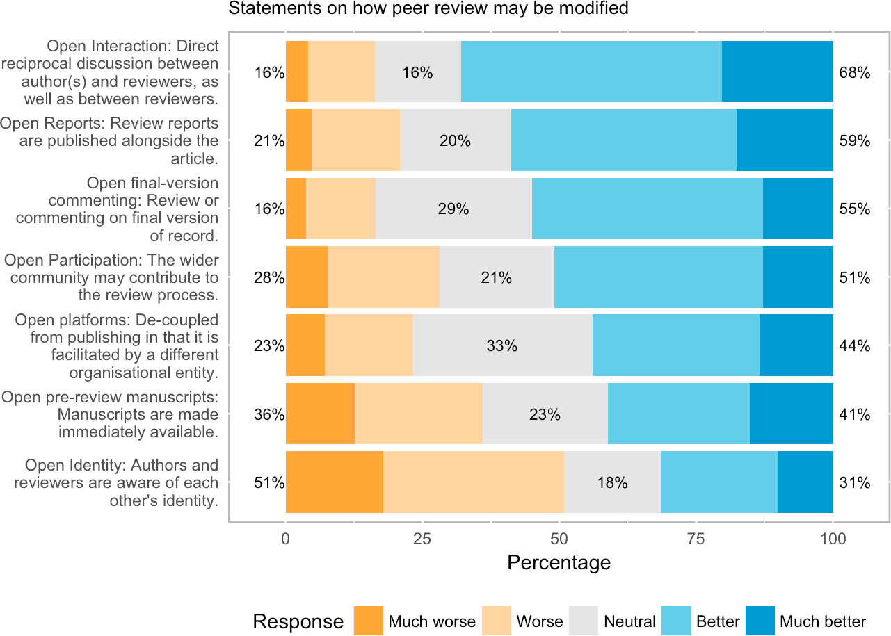 “Figure 8: “Will ”X” make peer review better, worse, or have no effect?”. https://doi.org/10.1371/journal.pone.0189311.g008” CC BY