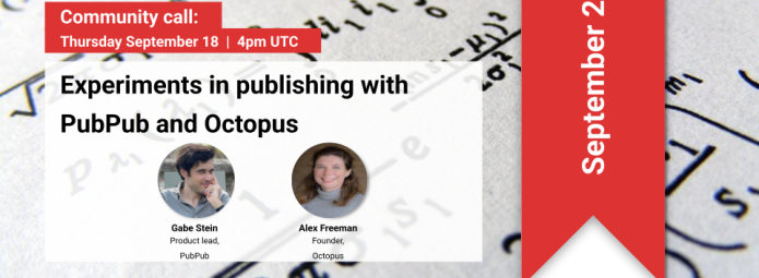 During the September Community Call, we heard from Alex Freeman from Octopus and Gabe Stein from PubPub.  The meeting started with Alex Freeman, who first introduced the Octopus platform. Alex discussed how academic problems all reflect how things are published.