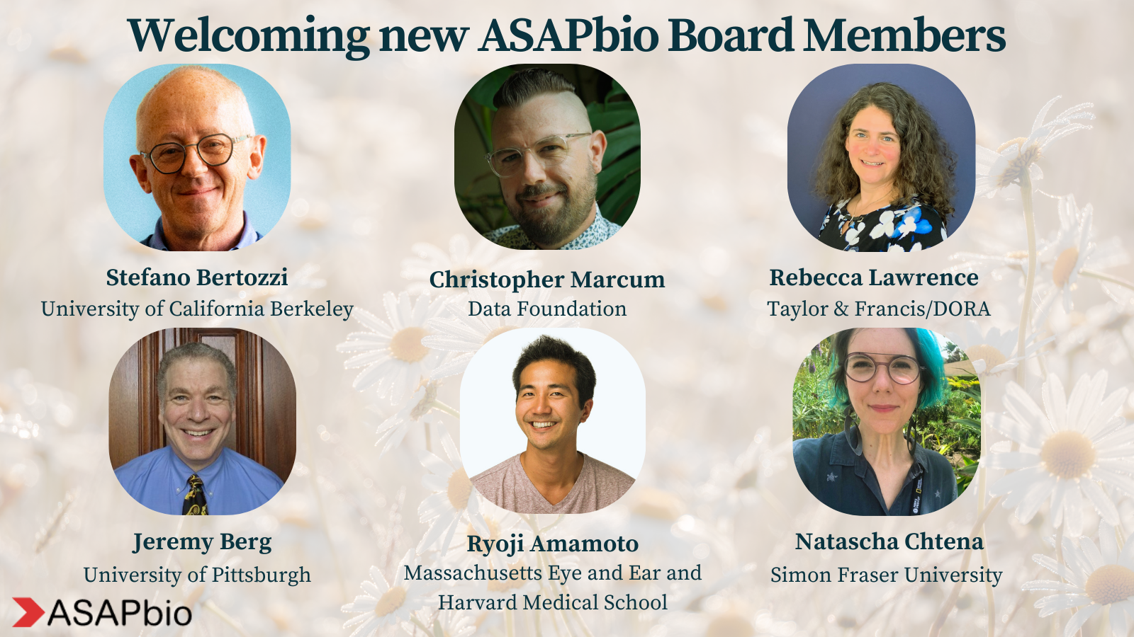 We are pleased to announce that the ASAPbio Board of Directors has welcomed six new members! The new board members have joined for two-year terms beginning January 1, 2026, and ending December 31, 2027.