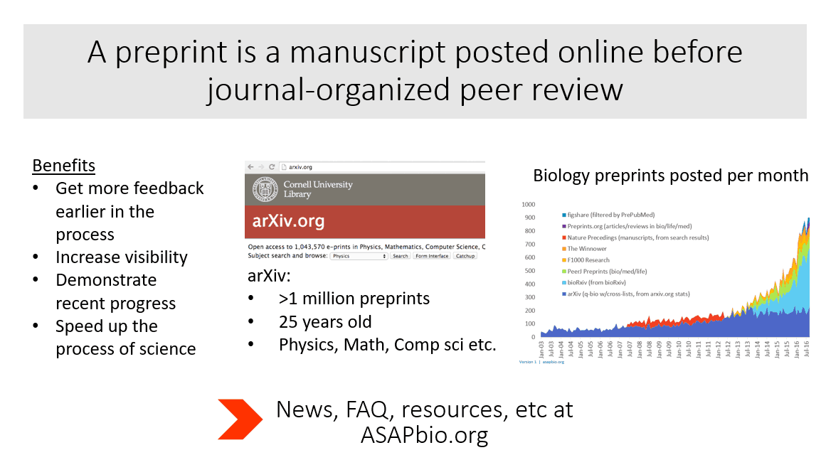 We’re collecting stories about researchers’ experience with preprints. You can tweet them @jessicapolka or using the #ASAPbio hashtag. You can also make a video (similar to Nikolai’s, above), or email [email protected] if you’d like to share something in longer written format.