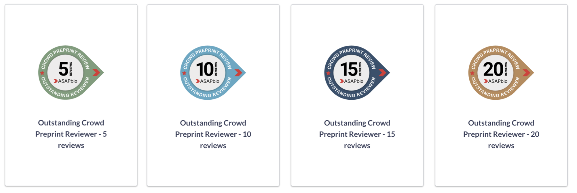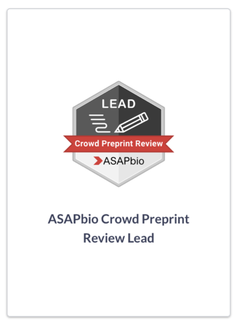 In 2021, ASAPbio began our Crowd Preprint Review initiative. So far, we have issued badges to our 2023 crowd leads and will soon be issuing badges to our current crowd leads. We hope that these badges in particular are useful for editors seeking reviewers or for societies who may wish to identify leaders in preprint peer review.