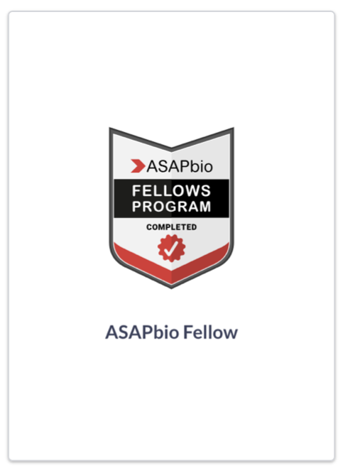 This badge is issued in recognition of completing the ASAPbio Fellows program. Badge owners have developed skills in advocacy and communication in relation to preprints. Fellows have a sound knowledge of preprints and the preprint landscape within the life sciences.