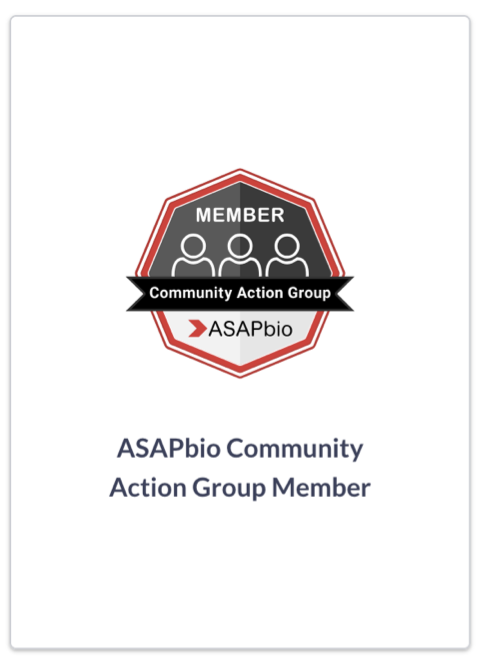 To earn this badge, an individual must (1) be a member of the ASAPbio community, (2) be a member of the Community Action Group, and (3) actively participate and contribute to CAG activities.