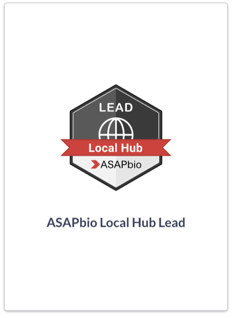 ASAPbio Local Hub leads are individuals who are responsible for promoting ASAPbio activities and preprints within a local community. Hub leads organise and run activities to further the adoption of preprints within their local area. This badge recognises the activity and expertise of local hub leads with regards to preprints.