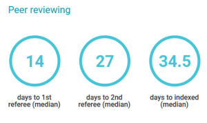 Refereeing process speed. Importantly, because the F1000 internal team manages the logistical aspects of the whole process, our peer review process is very fast. We believe this is largely due to the ability of reviewers to get credit for their work in open peer review, and the hands-on editorial support provided to authors and reviewers.