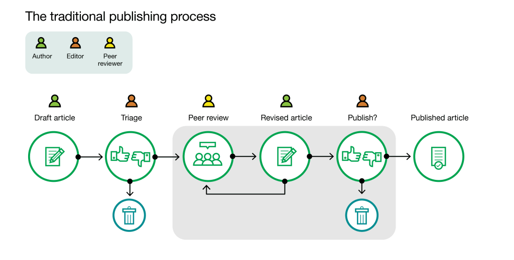 Publishing platforms and journals where authors decide when to publish explicitly forgo the editorial selection that currently occurs after peer review – and, with it, the (limited) ability to enforce a quality standard. Journals and editors can then focus on curating published articles through post-publication evaluation, which we discuss next.