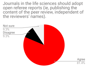 - Publishing the content of peer reviews (with or without the reviewers’ names) and making these reports a formal part of the scholarly record with an associated DOI,